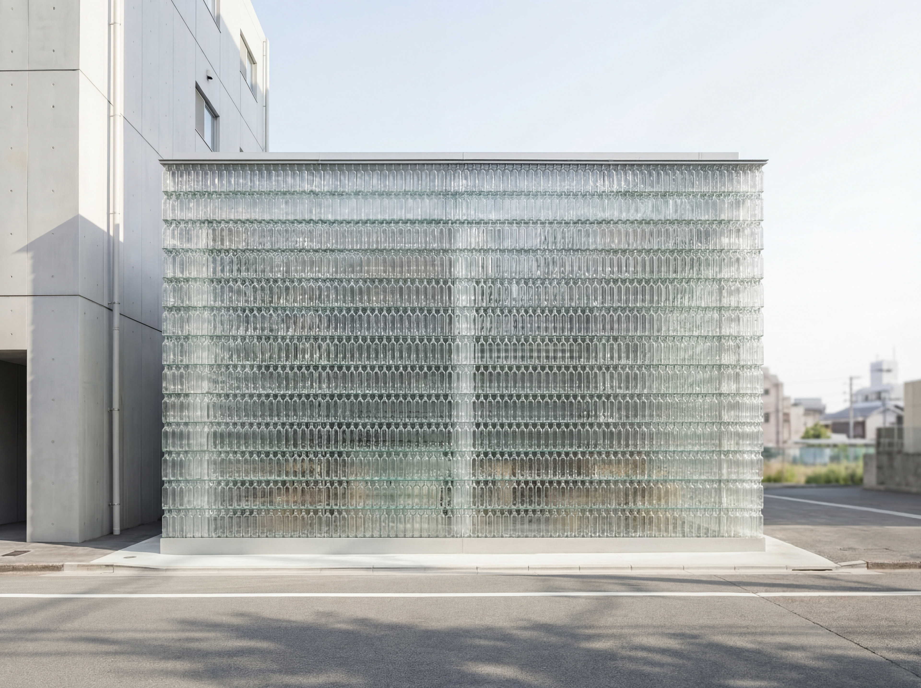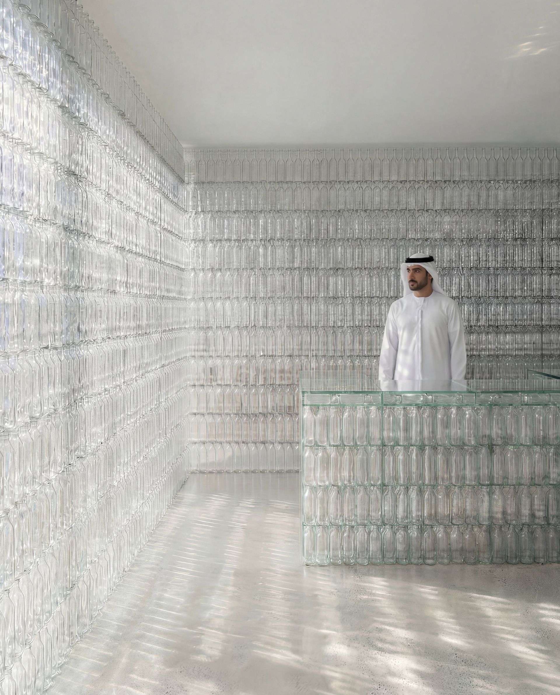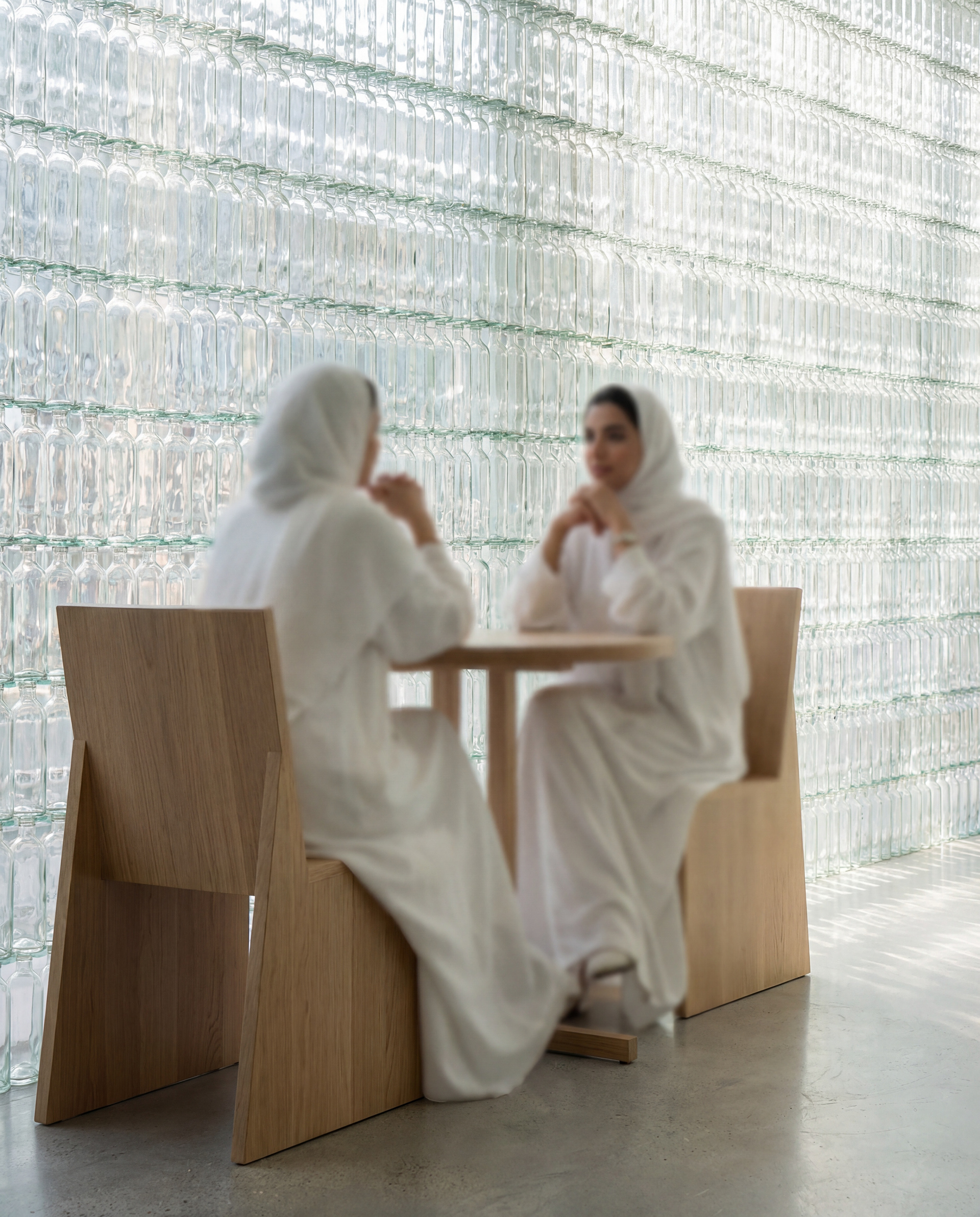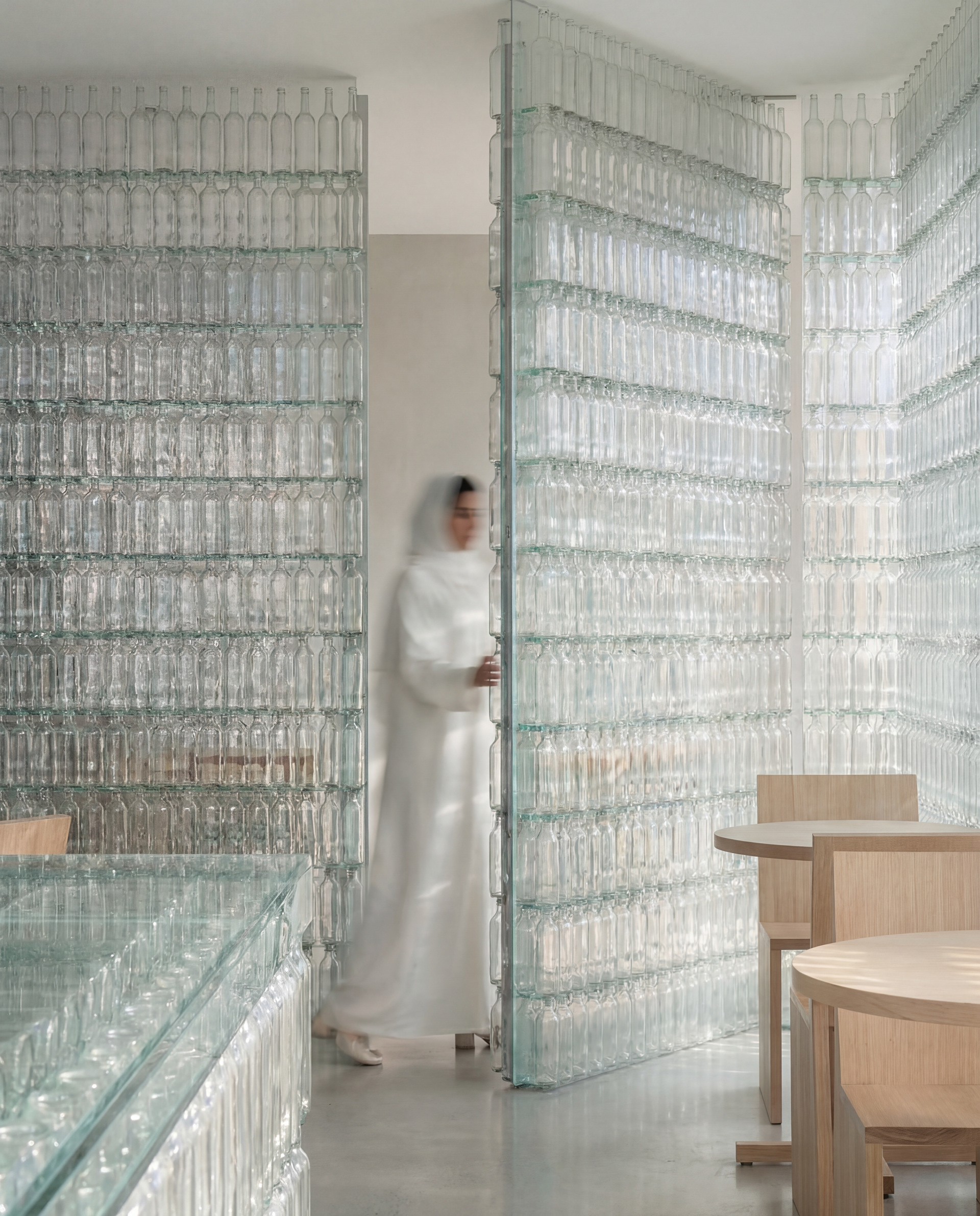 A pop-up café wrapped entirely in recycled bottles, where light becomes texture and sustainability becomes space.
